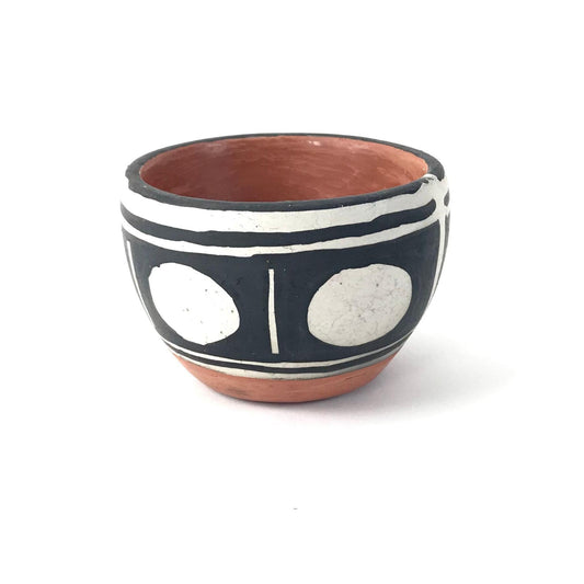 Located on the Rio Grande 25 miles southwest of Santa Fe, Santo Domingo is one of the largest Pueblos in New Mexico. This Keresan-speaking Pueblo is known for carefully preserving its traditional way of life and its legacy of bead-making and traditional pottery. It was established in the 15th century, though the current Santo Domingo village was built after a devastating flood in 1886. Every August, on the feast day honoring the Pueblo’s patron saint, hundreds of Santo Domingo people participate in traditional corn dances, drawing visitors from around the state. For hundreds of years, Santa Domingo artisans have been creating beaded jewelry, known as heishi, by cutting and rolling turquoise, stone and shell by hand. Historically, the people of Santo Domingo were extremely successful traders, carrying their jewelry and other crafts as far away as Mexico, the Pacific and Plains. Today, Santa Domingo artists continue to create exquisite handcrafted beaded jewelry as well as shell mosaic inlay and silver jewelry, and these distinctive jewelry styles are prized around the world. The traditional pottery of Santo Domingo is also well known, with many artists making simple jars of buff clay that they decorate with black, red or brown geometric patterns.