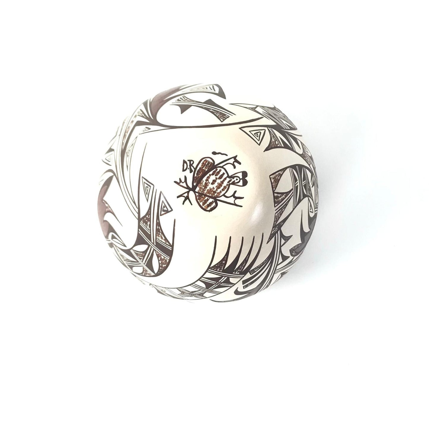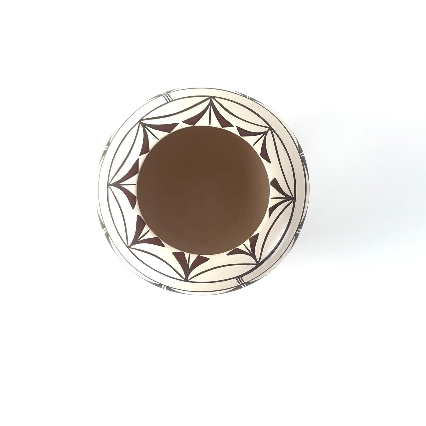 With a contemporary combination of natural and commercial clay, this fine walled piece offers a beautiful white slip background and traditional design painted with rich colored natural pigments.