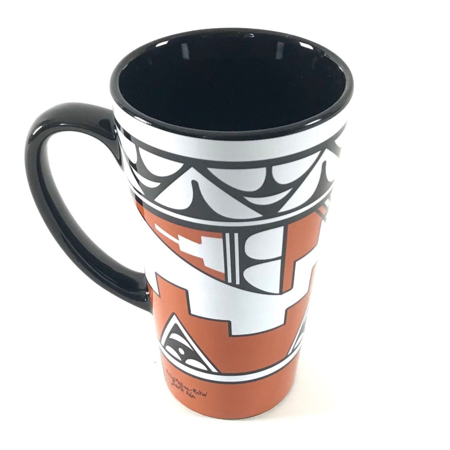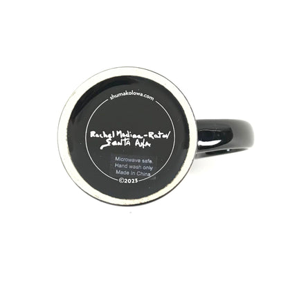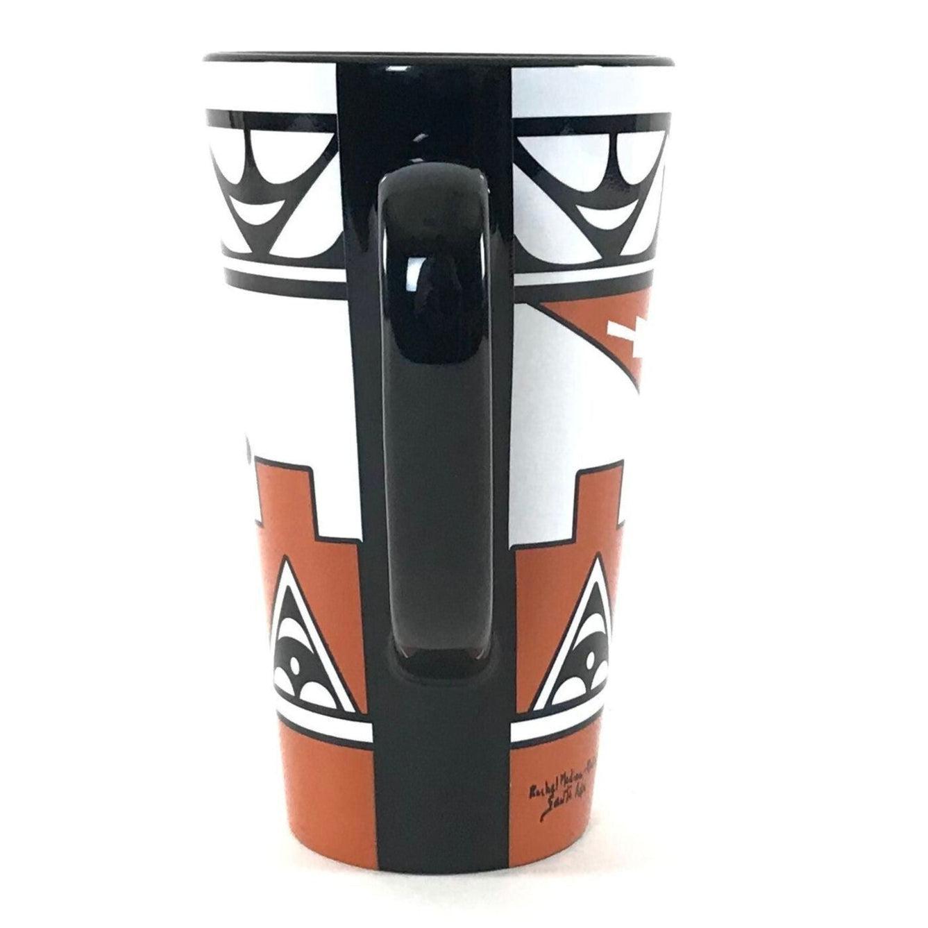 Indian Pueblo Store exclusive! This unique 16oz café-style ceramic mug is a replica of a single beautiful clay pot handcrafted by skilled Santa Ana/Zia potter Rachel Medina has utilized traditional designs painted in bold orange and black against a white background.