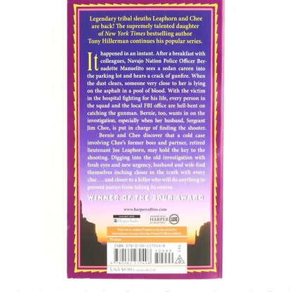 Navajo Nation Police Officer Bernadette Manualito witnesses the cold-blooded shooting of someone very close to her. With the victim fighting for his life, the entire squad and the local FBI office are hell-bent on catching the gunman. Bernie, too, wants in on the investigation, despite regulations forbidding eyewitness involvement. But that doesn't mean she's going to sit idly by, especially when her husband, Sergeant Jim Chee, is in charge of finding the shooter.