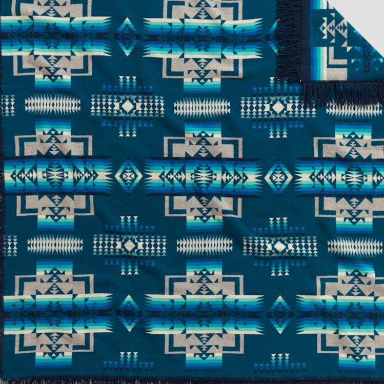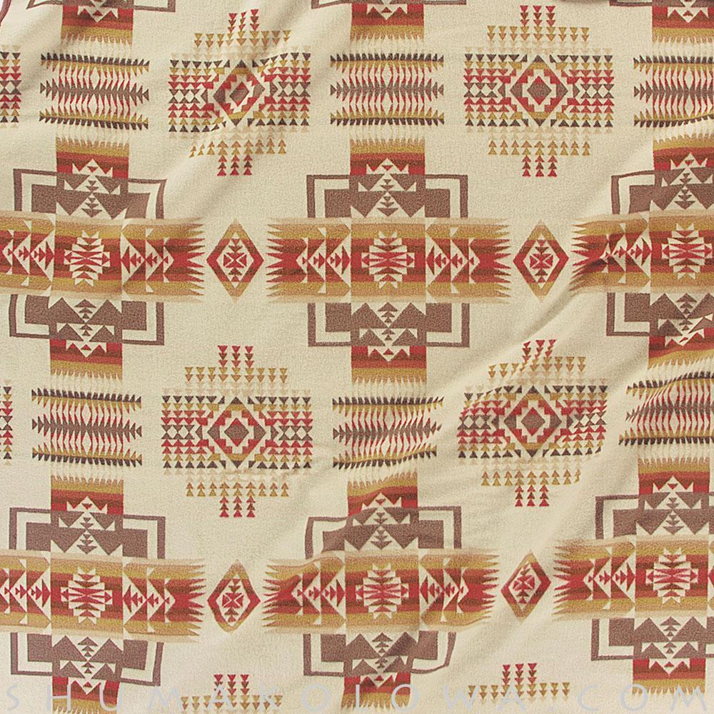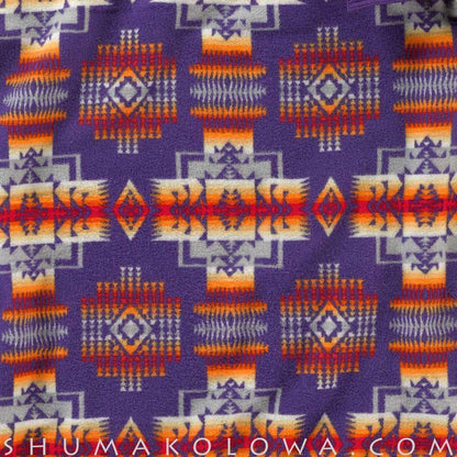With fringes around the edge, this is the ladies version of the very popular Chief Joseph design first woven in the 1920s. This USA-made wool blanket honors Chief Joseph who led the Nez Perce tribe native to northeastern Oregon in the late 1800s. Widely admired for protecting his people and speaking the truth, he is honored with this design, symbolizing bravery. Bold arrowheads represent the chief's courage, strength and integrity. Reverses for two different looks.